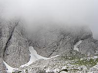 Še vedno dežuje. Ko stopimo na gredino v južni steni nas pričaka gosta megla. Ne vidim 2 m pred sabo. Pod steno pridem sam. Višje gori vidim Stevotov obris. Gre po nahrbtnik. Začnem sestopat in počasi prilezem ven iz megle. Nad mano zagledam Robertota in Stevota, medtem ko je Borut že globoko spodaj. Čez kako uro smo v bajti in debatiramo kako naprej. Odločitev pade, da sestopimo v dolino in domov. Ok. Spokamo ruzake, nekaj pojemo in se odpravimo. V slabi uri smo pri avtu. Dež je popolnoma ponehal a hribi so zaviti v goste oblake, tako da ni nič videti. Preoblečemo se, napokamo avto in se že peljemo proti Predelu. Ustavimo se na pijači v Logu pod Mangrtom in uradno zaključimo turo. Pot do doma v večji meri prespim, tako da ne vem, kaj se je dogajalo razen to, da sta se Roberto in Stevo zamenjala za volanom, ker je Robertota tudi že jemalo v mižule. Odložijo me pred ZD v Pustojni. Ura je neki minut čez 10 zvečer, ku stopm skuzi vhodna vrata. Odložim ruzak, se vsedem na posteljo in še ene plezalne zgodbe konec je.