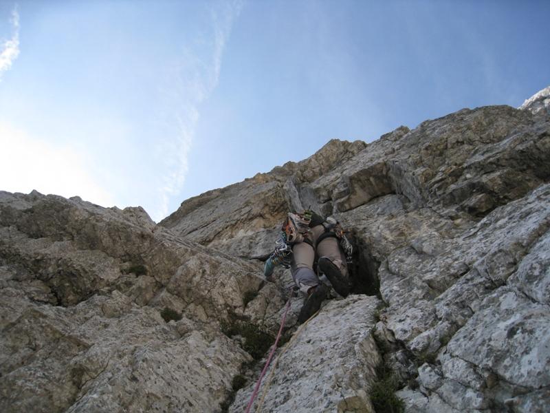 V petek pred skupno turo sva se s Tedijem odpravila v Triglav vplezavat. No, vsaj Tedi se je šel, jaz pa s polnimi hlačami dre... z njim. Smer je glede na oceno kar težka, vsaj meni je bila. Skala na momente zelo dobra, monolitna, ponekod pa ne preveč kvalitetna, tako da je treba kar malo pazit. Sicer je bilo pa lepo.