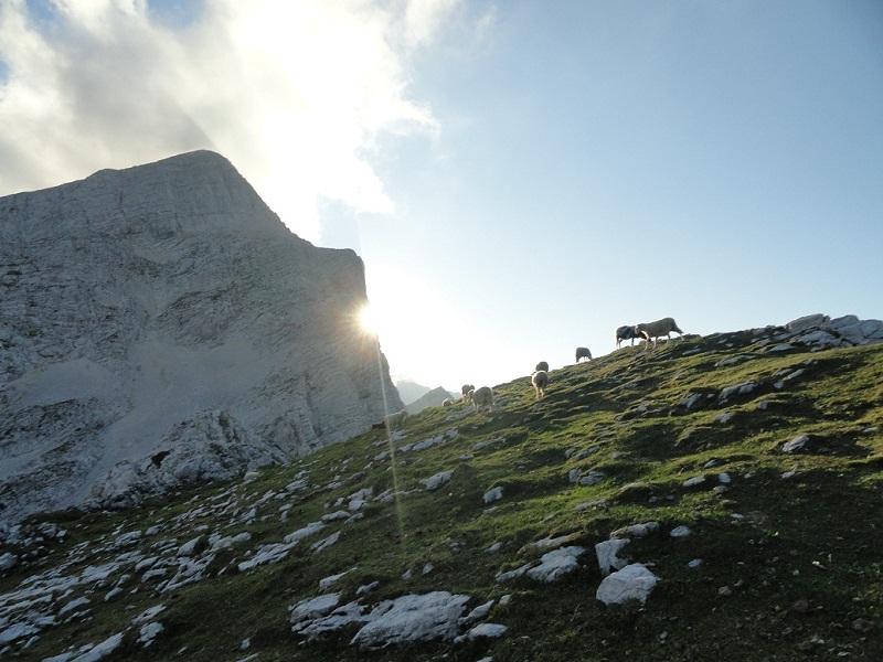 Ko smo izplezali na planinsko pot, se je sonce že prevešalo na zahodni del neba in odločili smo se, da vrh, ki naj bi bil oddaljen pol ure, pustimo za naslednjič. S temo smo prišli v Vrata, kjer se je trlo ljudi. Na platnu se je predvajala Sfinga, sceno pa je nudila Triglavska Stena, tako da je bil ambient res pravi!