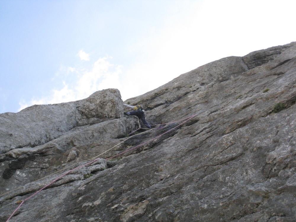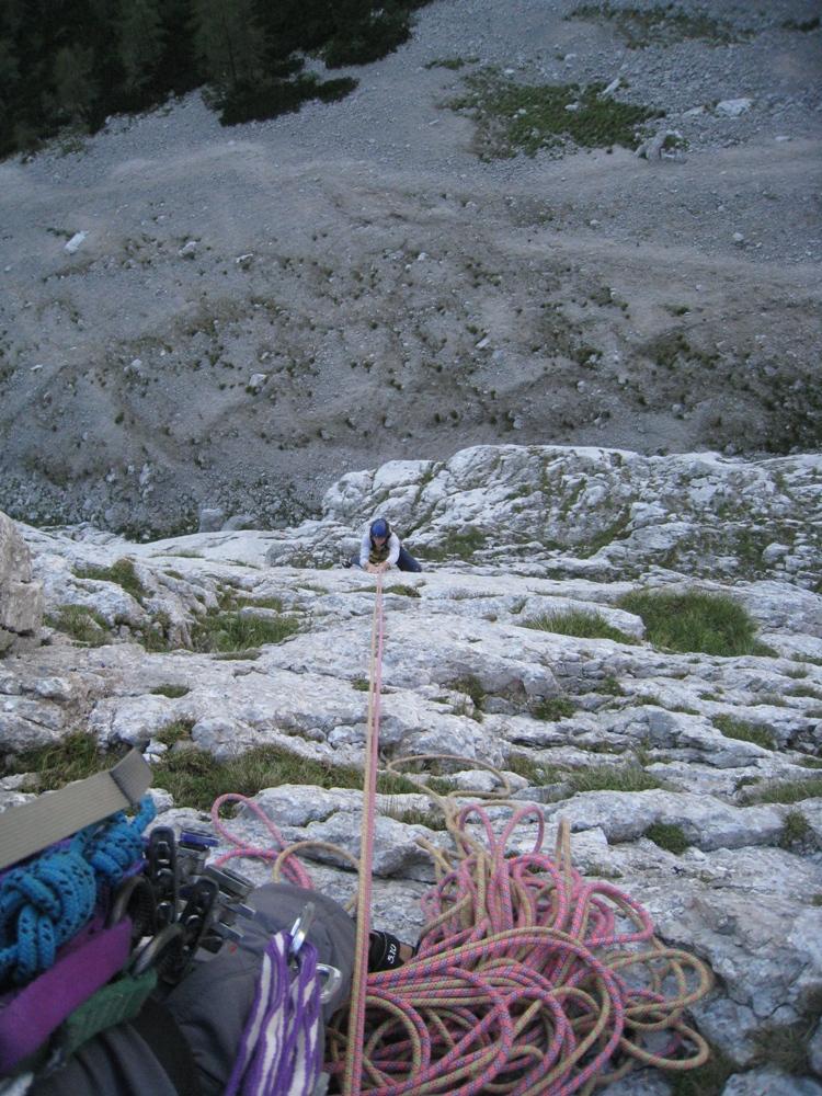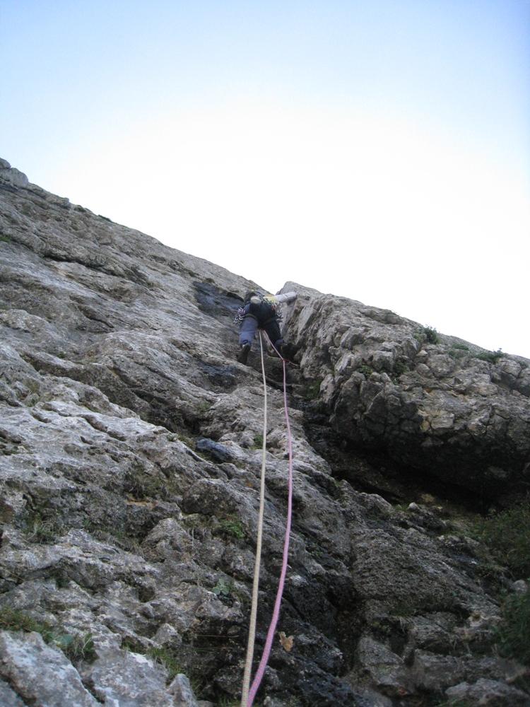 Kot že rečeno, sva v nedeljo s Tedijem po sili razmer plezala to smer, Tik pred dvanajsto imenovano. Plezarija je kar lepa, na momente težka, dostojno nasvedrana a če si malo švoh "in the psyche department" imej s seboj še kakega prijatelja a.k.a. metulja a.k.a. frenda