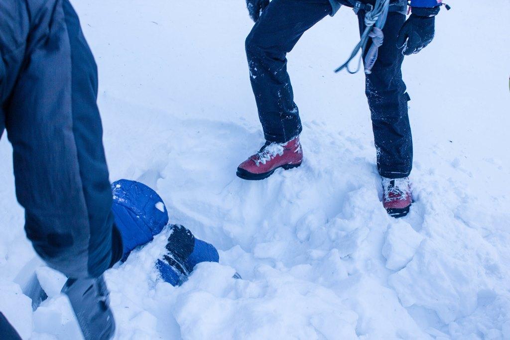 Malo nam jo je sicer zagodel nepredelan sveži sneg, tako da so bila naša snežna sidrišča bolj tako tako, pa morda še bolje, saj smo se tako še bolj potrudili, da smo varovali na telo. Abzajl je bil tudi precej imaginarne vrste, za prerez snežne odeje pa smo nekateri odkopali kar konkretno količino snega. In ko se pustiš zakopati v sneg, se šele vsaj približno zaveš strašljivosti in agonije, ki jo doživi nekdo, ki ga zasuje plaz. Res ni fino.