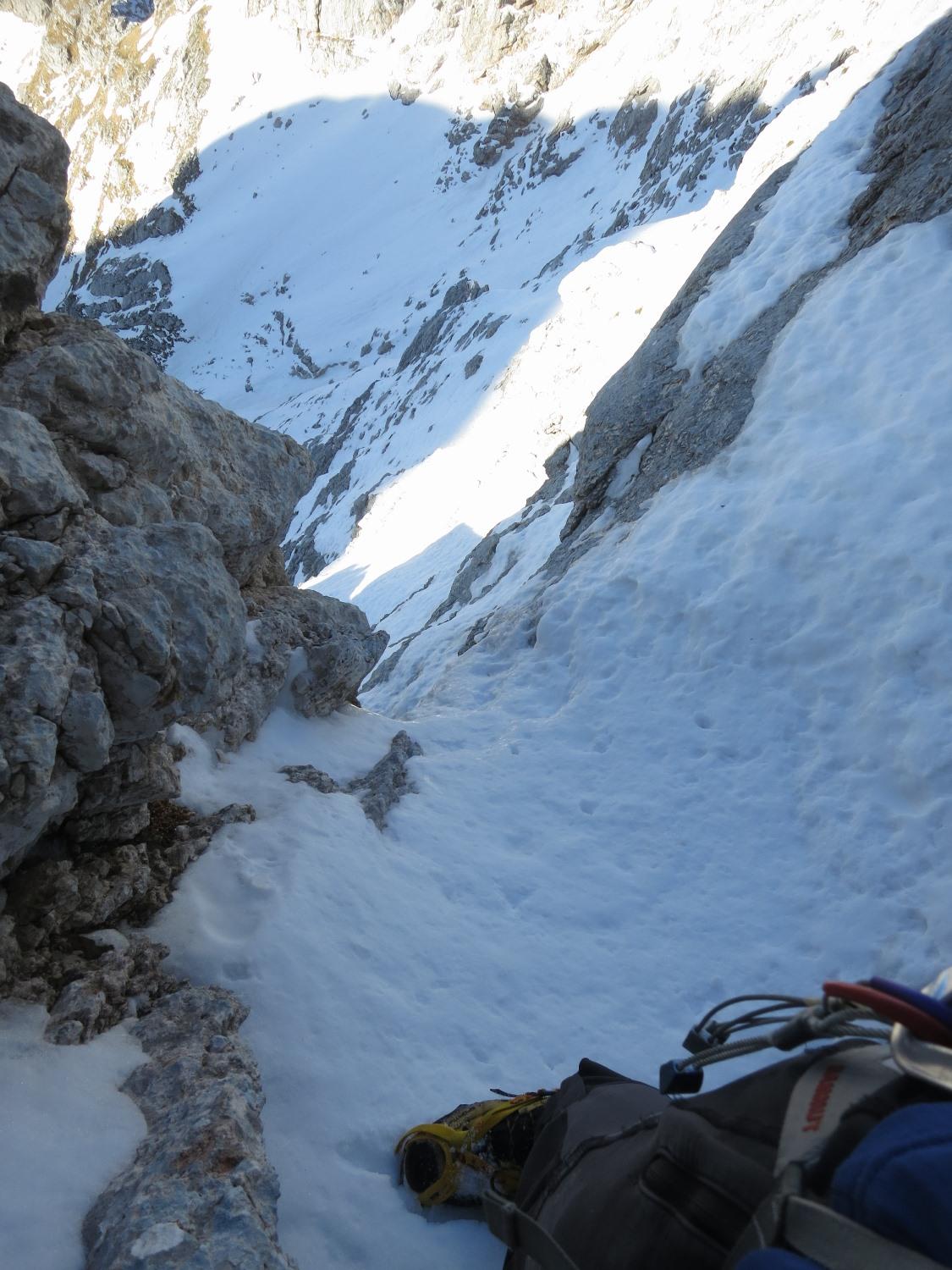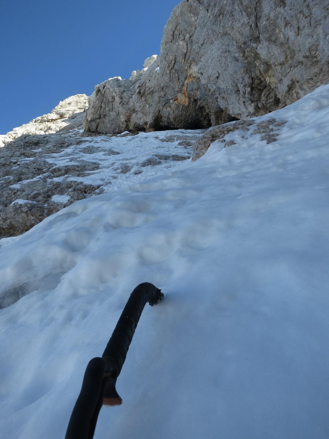 Z Edotom sva si zaželela lahkotnost plezarije in občutek ob trdno zapičenem cepinu v kompakten sneg podoživljati čez prihajajoče praznike. Za izpolnitev omenjenih kriterijev je Edo predlagal Kratko Nemško. Smer je hit te zime in zagotovo naju ne bo razočarala sva modrovala. In naju ni. Spodaj poteka plezanje v kopni skali, tako da se z varovanjem nisva dosti ukvarjala. Nad Nemškim turncem pa povsem zimske razmere, kompakten sneg, tudi led, prava idila. Največ dela sva imela z izstopnim raztežajem Zimmer-Jahna, ki pa je prava češnja na torti. Na sestopu sva ujela še nekaj prepotrebnih sončnih žarkov. Čudovit uvod v praznične dni.