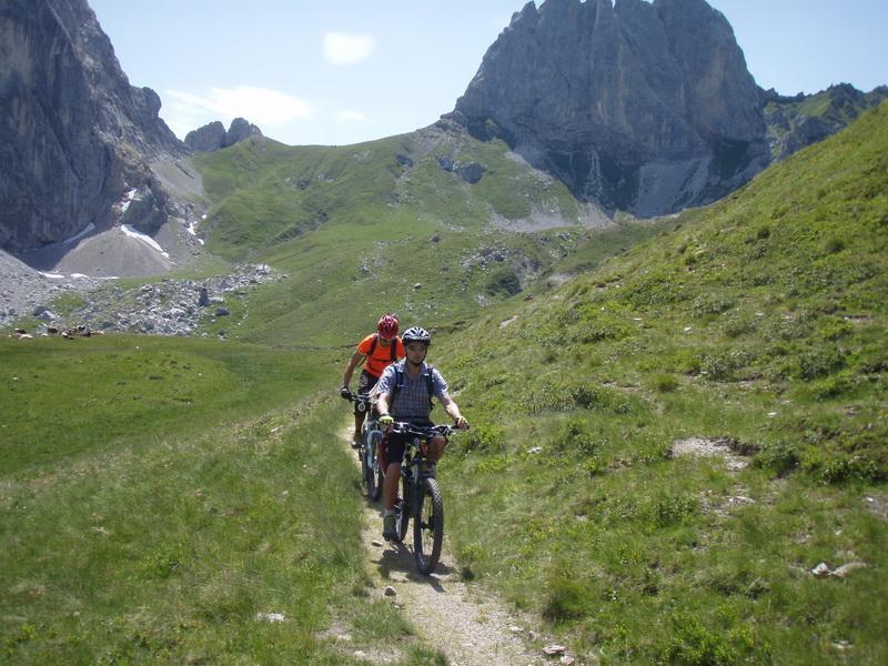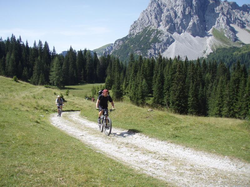 V nedeljo smo naredili turo v Karnijcih. Pot do izhodišča je kar dolga (200km). Nazaj pa isto samo vleče se pa dvakrat dlje:( Tura je bila pa lepa in predvsem razgledna. Štartali smo iz Forni Avoltrija, mimo izvira Piave, na prelaz Sesis (2311m) od tu pa spust do avta. Vmes so imeli na eni koči roštiljado in musko z DJ-jem. Spodnji del poti pa so uničili gozdarji in so lepo singlco spremenili v cesto in gradbišče(: Sicer pa smo naredili 27km in 1500 višincev. Spodaj je bilo precej toplo, proti vrhu pa je bila temperatura bolj znosna in še veterc je pridal svoj delež za ugodje. Tura je gor v glavnem vozna razen zadnji del ceste, ki je zelo strm in je vozen le za trmaste, zadnjih 150 višincev pa smo nosili. Spust pa je takoj s prelaza kar zahteven (jaz sem šel peš), potem pa je vozen. Spodnja polovica je po planinski cesti in je bila vožnja precej hitra.