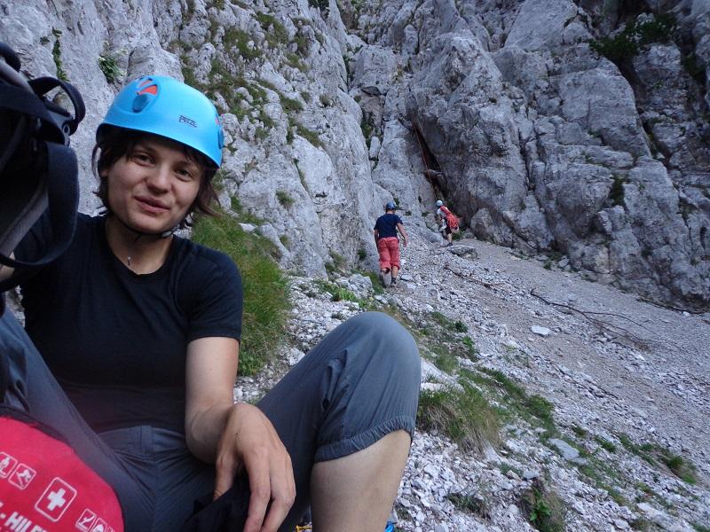 Obetali so se sončni poletni dnevi, zato bi bilo zelo žalostno, če se jih ne bi izkoristilo za plezanje. V četrtek, ob tretji uri, sva se s Septoleto odpravili na počitnice, z avtobusom v Kranjsko goro. Popoldne sva se metali v jezero Jasna, zvečer pa sva se zavlekli v gozd in tam prespali. V petek pa štop na Vršič, ki sva ga, kot vedno do zdaj, z lahkoto dobili (še so dobri ljudje po svetu). Plezali sva Smer po kaminih, v kateri je Septoleta uživala, jaz pa sem spoznala svojo šibko točko in jo hkrati tudi fino potrenirala. Nekomu sva najbrž polepšali kak plezalni dan, ker je v smeri ostal najin odtis (lep zlat komplet z rdečo gurtnico). Mogoče, pa ga je našel celo kdo od vas, kdo bi vedel. Če je tako, ga lahko zamenjamo za kakšen pir. Drugače pa sva tudi doma pozabili opis dostopa do smeri in za pomoč v stiski prosili ferajnovca Dejkota . Res je, da nisva ravno dobili, kar sva potrebovali, ampak se je fant potrudil in nama priskočil na pomoč, kar je glavno in hvale vredno. Pri jezeru je zvečer čakala izmučena in od šihta zdelana Sedlarči, da smo jo le komaj privlekli do jezera in ji pripravili spalko . Zjutraj naju je s Sedlarči Septoleta zapustila, midve pa sva se odpravili plezat severni raz Male Mojstrovke. Bilo je zares lepo. Sedlarči je poročala, da je za nama srečala prijatelje iz ferajna (Polija in Rambota), vendar sem v prispevku pod Kaj dogaja ugotovila, da je malo sfalila smer. Plan je bil sestop po Hanzovi poti, vendar sva se, kar naenkrat - nič hudega sluteč, znašli skoraj na vrhu Male Mojstrovke in sva morali potem še nazaj pod smer po moj nahrbtnik, ampak je tako treba še kaj delat za kondicijo. Ta dan se je popoldan, nekje iz hrvaške, javil SlaTki in zmenili smo se, da se dobimo v Kranju in gremo na Jezersko. Zvečer smo stežka zaspali, našteli smo veliko utrinkov - v številu videnih utrinkov je zanesljivo zmagal SlaTki, ampak je imel za to zmago tudi daleč najboljše pogoje. Želje se že uresničujejo :). V nedeljo smo splezali Jubilejno smer v Dolgem Hrbtu. Skala je super, le na vrhu malo bolj krušljivo. Moram tudi reči, da je šlo kar hitro, saj je SlaTki prevzel vodstvo. Okoli osmih zvečer smo bili pri avtu in smo se vsi strinjali, da je plezanje fajn, da je v gorah lepo in da je take dneve treba še ponavljati.