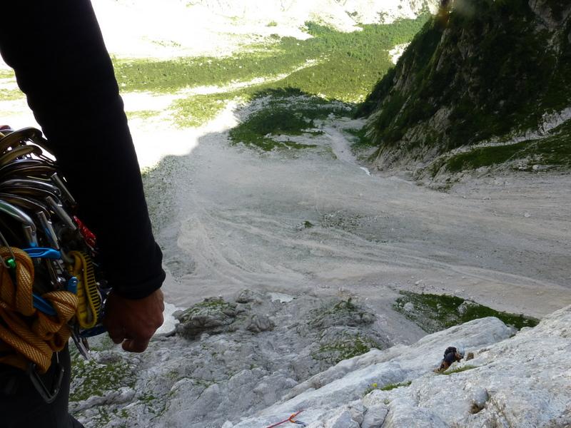 V ponedeljek sva šla z Neli pogledat tole tako dobro opevano smer z imenom Poezija. Smer naju je v celoti navdušila, skala je fenomenalna! Poč v prvem cugu nudi res lepo plezanje. S smerjo sva zmogla brez težav, ki so se pa našle pri sestopu. Malo sva zabluzila a vseeno uspešno našla prehode do melišča, ki naju je pripeljal na pot pod steno.