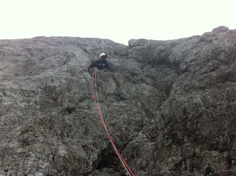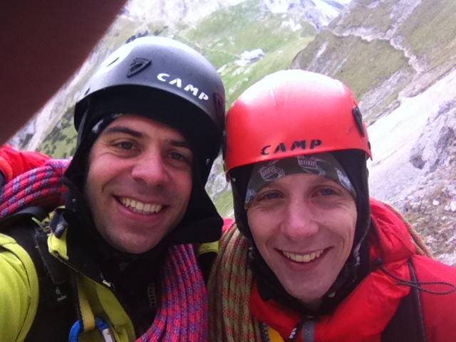 Na dan državnosti sva se z Lukatom zapodila v severno steno Nad Šitom glave. Sprva sva hotela plezat Smer po zajedi, pa sva po kratkem pregledu stene (smer fajhtna in težka) spremenila namero in se odpravila v Albinco (soseda od Košir-Brelih). Prvi cug sem potegnil jaz, nato pa sem to čast prepustil bolj izkušenemu in užival v toprope-anju. Smer je lepa, skala pa na mestih super, na drugih pa tako podrto in naloženo, da ne veš kam bi stopil in za kaj bi prijel. Vlage je bilo povsod še dovolj, zgodnja ura pa je dobro pomrzla tudi prste. Vseeno je bil dan odlično izkoriščen, vreme je odlično služilo in smer je prava uživancija. Na vrhu sva še "omastila brkove" z leskovačkimi specialitetami, spodaj v dolini pa smo družno s Polijem in Dalenjcem odličen dan podkrepili še ob pivu v Mojstrani. (fotkal Luka)