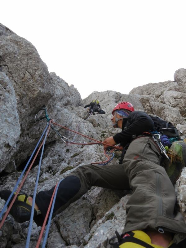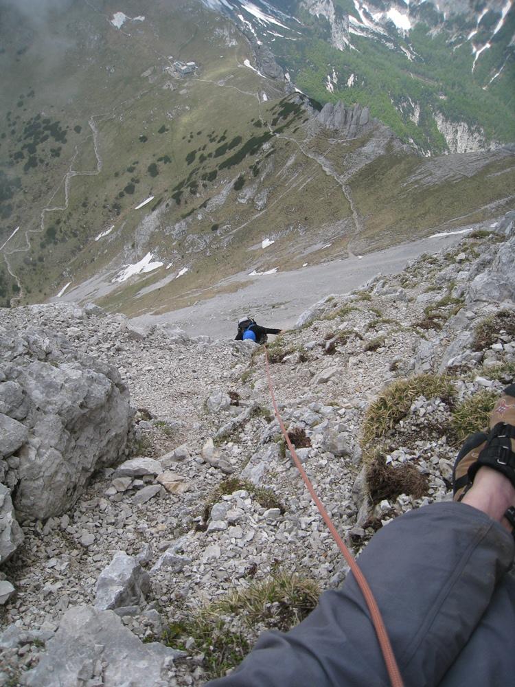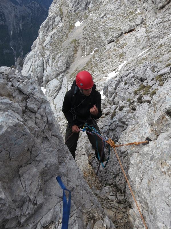 Včeraj smo izvedli še drugi del skupne ture, tokrat na Kamniškem sedlu. V vetrovnem vremenu smo ropotali po stenah Planjave (Z in JV) a kljub temu uživali v čvrsti skali, lepih razgledih in izpostavljenosti. To zadnje, so besede mojih dveh varovancev - Klobuka in Smajlija :). No, mi trije smo zmogli Smer Svetelove navzgor, veščine spusta po vrvi pa navzdol. Malo se še tresejo hlače, drugače pa kar obvladajo motanje na "abzajlih" :).
