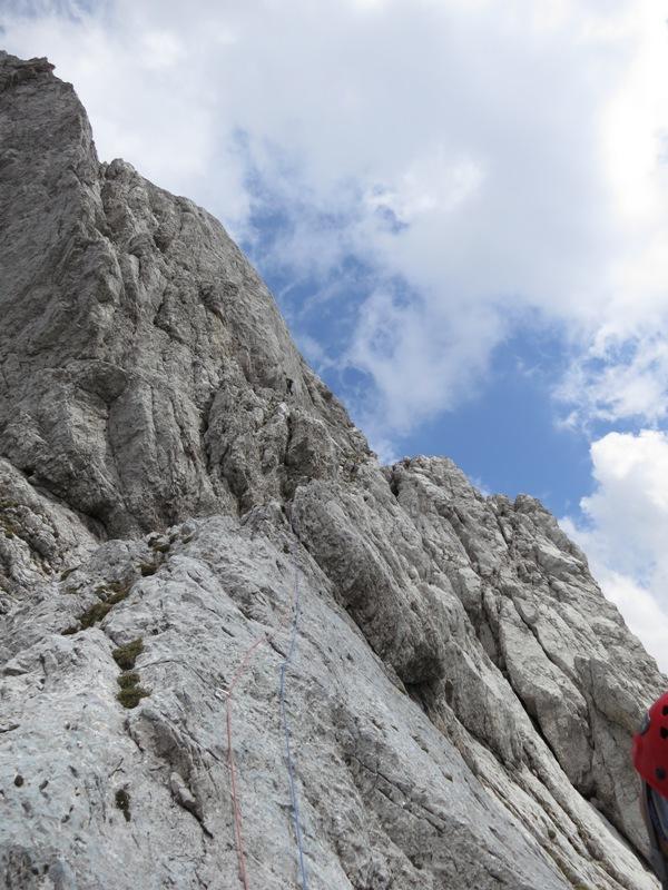 Drugi dan skupne ture je bilo v planu plezanje v Planjavi. Pridružil sem se Boštu in Sašotu. Začeli smo v Kratkohlači (V-/IV), v smeri so nam sledili še Robi s Polono in Nejcem. Na vrhu smeri zaslužena malica in hitra odločitev da zlezemo še nekaj. Izberemo smer X (IV) v Planjavi. Pred vstopom malo pogledujemo oblake, ki so se zbirali nad Brano in grozili z nekim dežjem. Pohiteli smo do vrha, smer je res lepa sploh drugi cug, lepo izpostavljeno plezanje. Poabzajlamo pod steno a nas na zadnjem abzajlu ulovi dež. Hitro sestopimo do koče malo se posušimo, popijemo vitaminski napitek :D in že gasa proti dolini. Sledilo je še druženje ob pici in debatiranje o smereh.