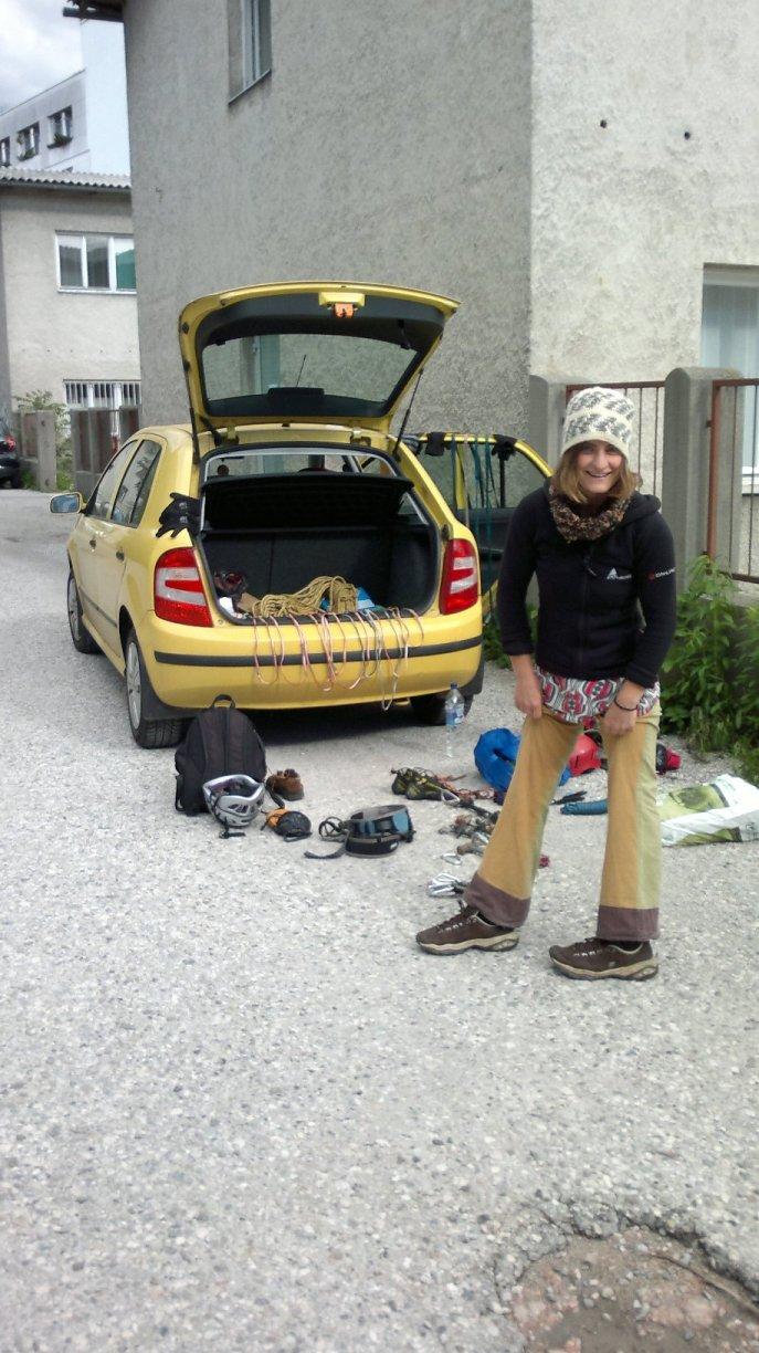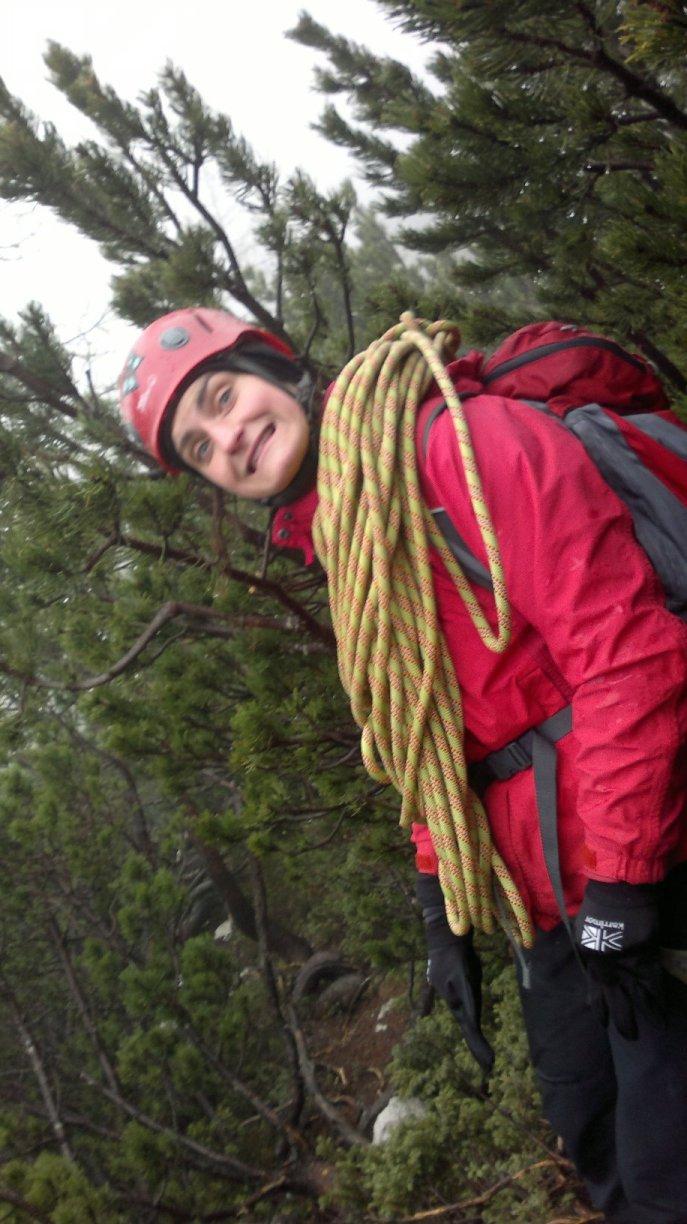 Ostal je še ponedeljek ko sva še enkrat odšla pod Begunjščico z namenom da zlezeva Šentansko smer. Ampak naju je dobesedno spralo iz tretjega cuga. :)