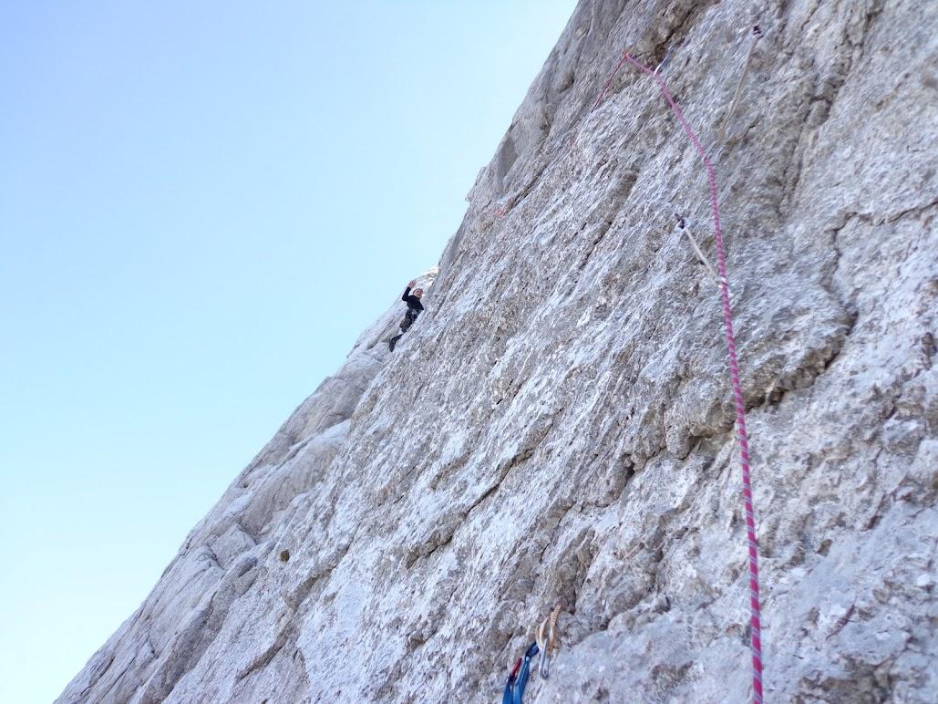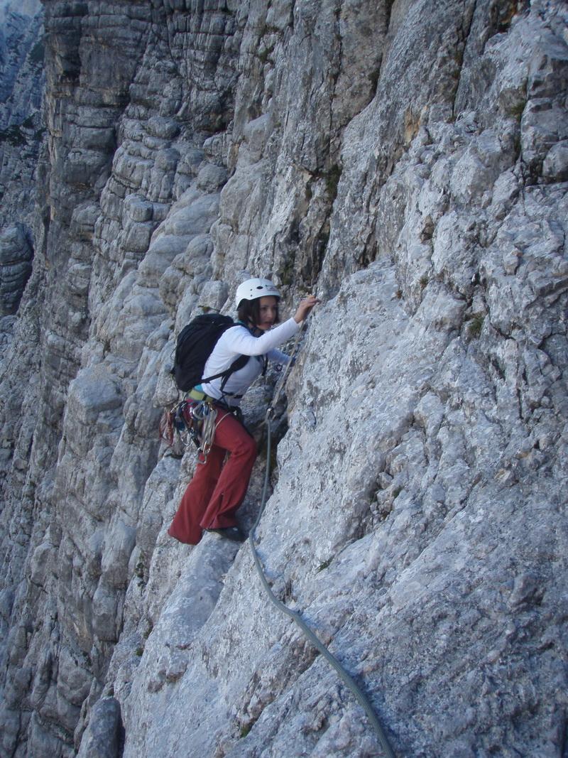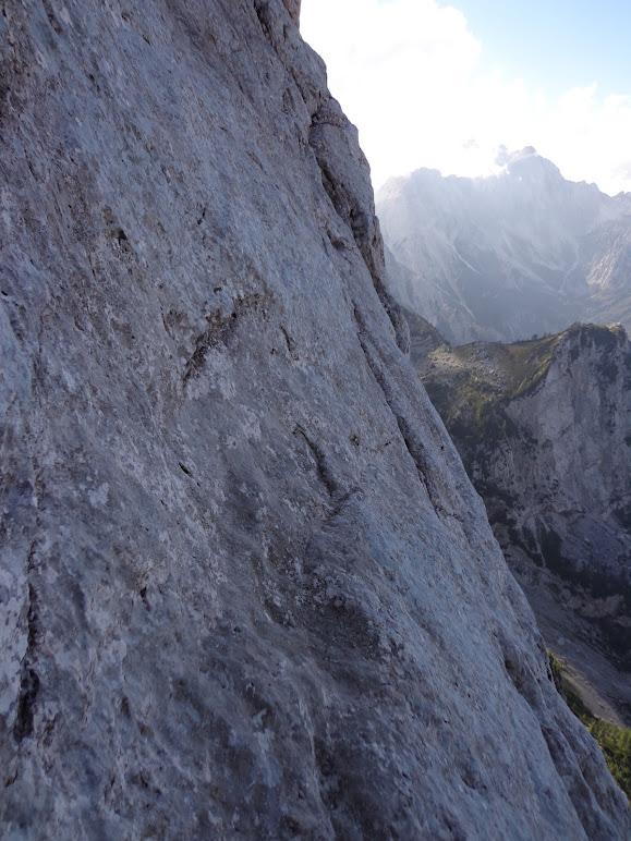 V soboto smo z Miho in Zalo plezali Severni raz naveze Krobath-Metzger v Trbiški Krniški Špici. V isto goro me je pred tremi leti peljal Robi plezat smer Crozzoli-Zaccaria, ki je bila zame prva hribovska smer in se mi je takrat zdela popolnoma podrta in neskončno dolga. Kljub temu, da je Krobath-Metzger njena soseda, je skala skozi celo smer zelo dobra. Nas je pa Miss Julijcev vseeno kar namatrala.