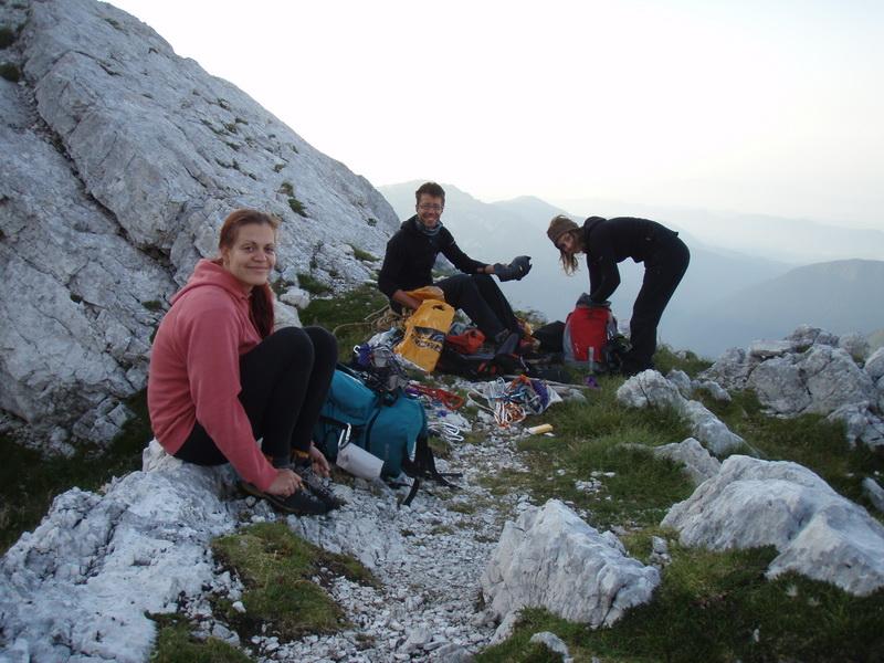 Kaja, Petra, Robi in jaz smo se že v petek proti večeru skozi Žmavčarje povzpeli do bivaka pod Skuto (se kar vleče), se najedli, naspali in zjutraj navalili na Vzhodno smer v Mali Rinki. Gužva strašna, letečih kamnov ogromno (Petro imajo najraje), nekaj izpod nog in štrikov predhodnih navez, nekaj pa izpod nog treh gamsov, ki so pohajkovali po strateški polici nad spodnjim delom smeri. Štriki so se veselo prepletali, na štantih smo sklepali nova poznanstva, na čas se ni bilo vredno ozirati. Na pivo v Kamniški Bistrici smo prišli šele malo pred mrakom. Fotk skalovja je na spletu kar nekaj, kakšno z nami pa morda prilepijo ostali udeleženci. In seveda najpomembnejše: čestitke Petri za prvo preplezano hribovsko smer v enakovredni navezi!