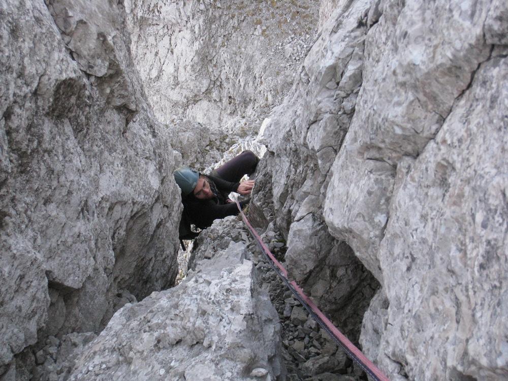 . Plezala sva pa kombinacijo Direktne in Lojzkove smeri. Bilo je fajn. Za konec sva skočila še na vrh Storžiča in čez Škarjev rob nazaj v dolino.
