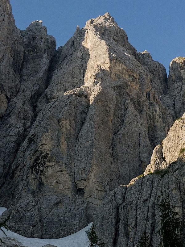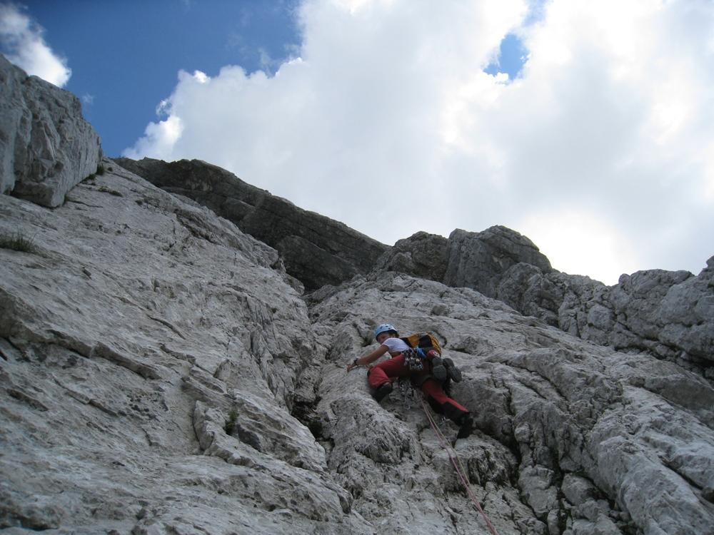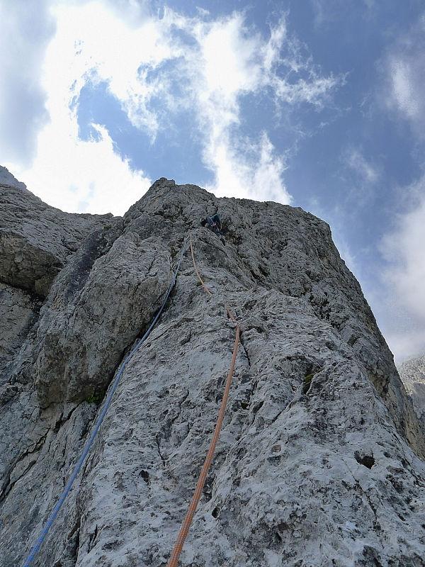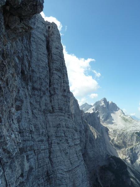 V tej smeri pa Anžetu niti nebi bilo potrebno vzljubiti prečk, dve ponudita res lepa prehoda v čvrsti skali, eno od njih je tudi pred kratkim plezal, ostali dve pa sta sprehod po policah.