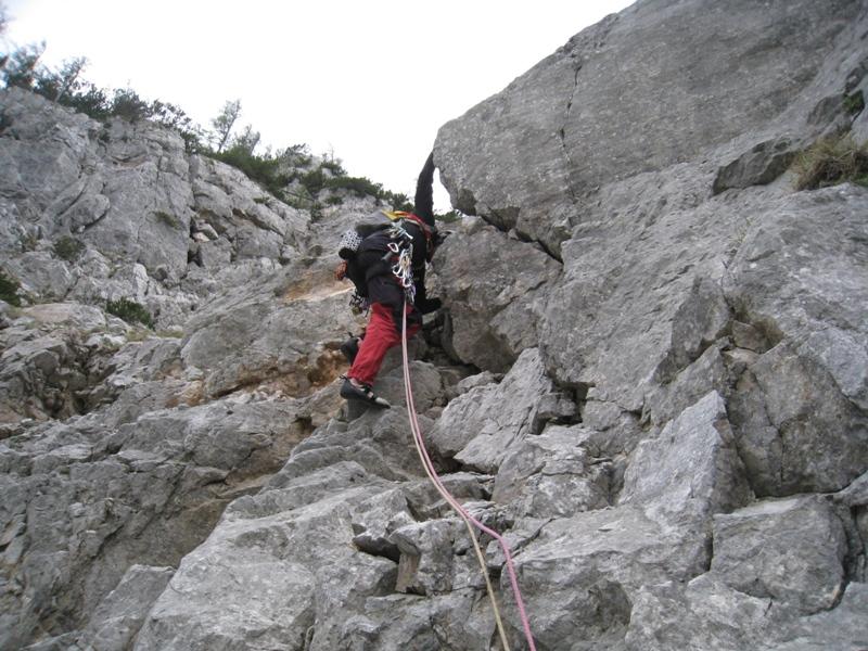 , za kar jim bomo večno hvaležni. Primož se je v svoji prvi hribovski smeri dobro odrezal, razočaral ga je edino zaključni del smeri, ki je klasično podrt. Se bo že navadil siromak, kaj pa hoče drugega