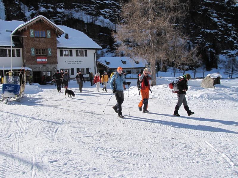 Zlaganju opreme iz avtomobilov je sledila mrzla vožnja z motornimi sanmi (razen važičev, ki so se lahko peljali v avtu). Ko smo prispeli do Naturfreunde haus, je bil dan že globoko v dopoldnevu.