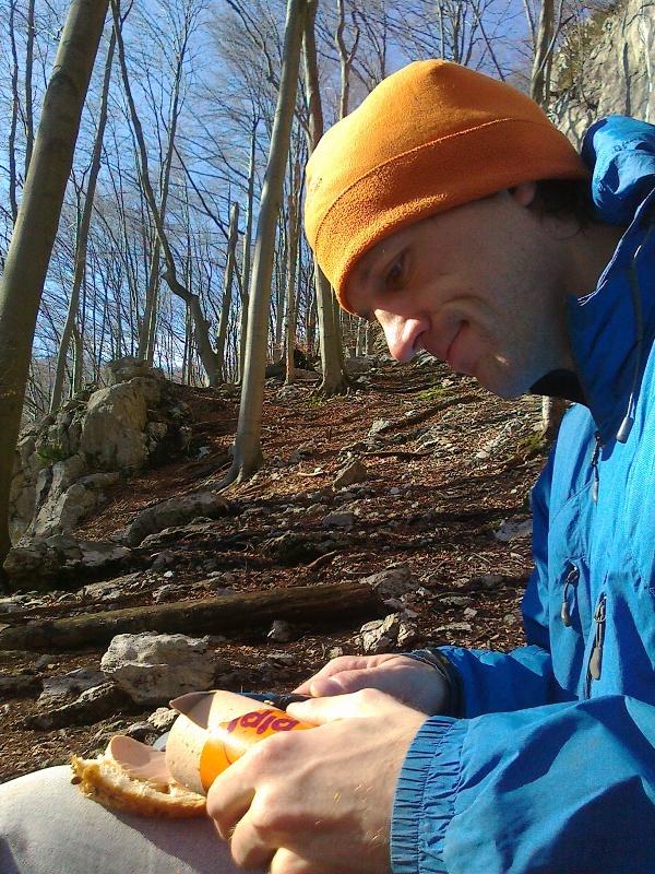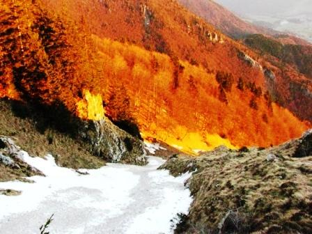 Medtem ko ste bili po večini v službi, da ne rečem pred monitorji, sem sam izkoristil lepo vreme in skočil malo za kondicijo na Storžič z juga, točneje iz Bašlja. To se je godilo v torek. Na poti po moji 'diretisimi' sem srečal le enega pohodnika in na vrhu 3 lačne, pozerske kavke. Še veter se me je sramoval in to dosti bolj kot razgled in modrina. Tako sem po poštenem in zasluženem počitku na vrhu vsaj sestopil razgledan in moder, malo tudi ogorel, pazljivo počasi, da sem ujel še lepe barve pred prvimi koraki skozi gozd (glej slikco).