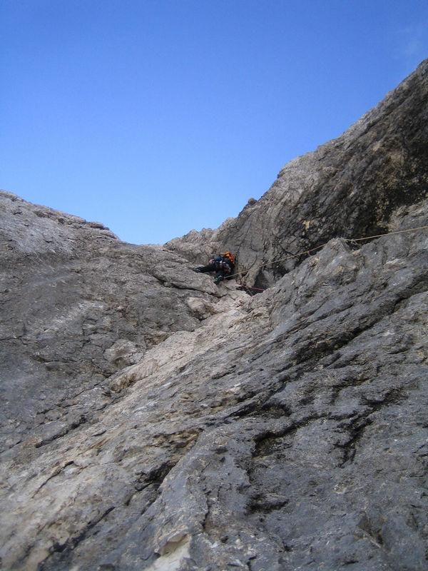 Naslednji dan sem se z Majo, Lukom in Juretom spravil v 400m raz, ki je lepo viden iz kampa. Če je lepo viden iz kampa je lepo viden tudi kamp z raza. In res je razgled s celotne smeri fenomenalen. Smer smo zlezli kar hitro. Še dobro, da smo zgodaj vstali in vstopili prvi. Takoj za nami so se nabrale še tri naveze. Zadnja od njih je bila na vrhu vsaj 2 uri za nami. Nekoliko neugoden je bil spust ob vrvi, ker poteka mimo smeri, kjer nekateri plezajo sidrišča pa niso ravno logično postavljena.
