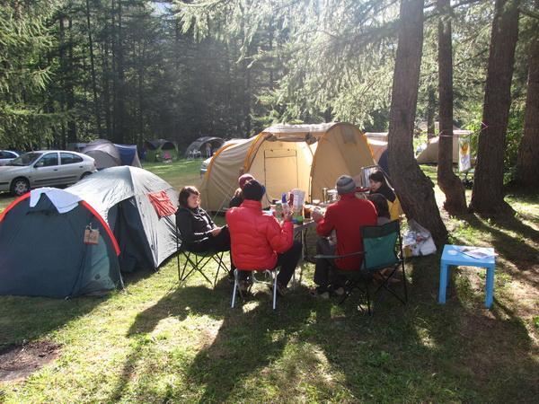 V kampu sta nas že pričakala Luka in Maja, ki sta po potikanju po Avstriji in Švici na zborno mesto prispela že dan prej. Od njiju dobimo prve informacije, kje je kaj (WC in že zgoraj naštete stvari). V kampu v neposredni bližini toaletnih prostorov je bila tudi ena hiška z eno sobo, kjer se je dalo ob normalni razsvetljavi tudi ponoči kaj prebrati. Tega mi nismo rabili, ker smo imeli ves čas lepo vreme in vedno kaj za počet. Toaletni prostori niso ravno vrhunske kategorije a kljub temu nudijo vse kar se v poletnih mesecih, ko je kamp odprt tam potrebuje. Le toaletni papir je potrebno imeti s seboj in angleški WC nima desk kot bi se takšni napravi prileglo. Čučavcev pa nimajo. Pa smo šli spat.