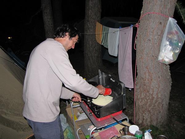 Zbudili smo se v nenormalno hladno jutro. Mogoče od tu ime kraja. Da smo se ogreli smo si najprej skuhali čaj. To se je ponavljalo vsako jutro. Ko je tudi na našo parcelo posijalo sonce smo kar hitro odmetali topla oblačila in kmalu že iskali senco. Jaz prvi dan vedno rabim nekaj časa, da se orientiram v prostoru in času, zato sem dan začel z obveznim hitrim sprehodom v bližnjo okolico kampa. To je do tistih hišk v okolici Spara. Ko smo se vsi spravili pokonci in pozajtrkovali, vključno z Juretom, smo se sprehodili do bližnjega plezališča, da začutimo granit. Do večina plezališč in daljših navrtanih smeri je iz kampa samo sprehod saj se stene dvigajo kar iz kampa ali pa vsaj njegove bližine. To je res ena velika prednost kraja, saj ni treba vsak dan zaganjati avtomobilskega motorja, ki večino časa lahko počiva ob šotoru. Plezališča so lepo navrtana povsod pa se je na vrhu potrebno prevezati. Ni tako komot kot v Črnem kalu. Ocene v granitu pa se mi zdijo malo drugačne kot pri nas. V 6a še vstopit nisem mogel. Kar nekaj. Plošča brez razčlemb pa še pokončna. In sem se odločil, da bom daljše smeri izbiral kar previdno. Za zaključek dneva je Luka spekel še goro palačink in dan je bil popoln.