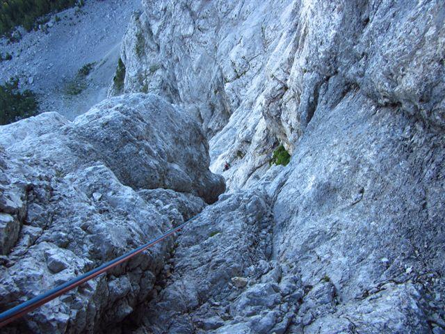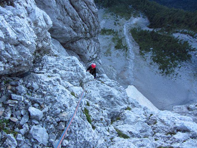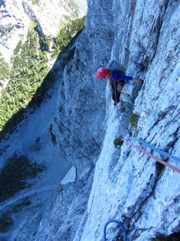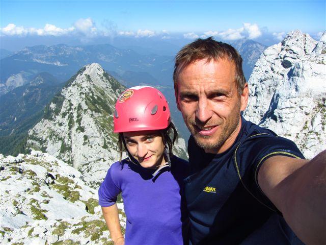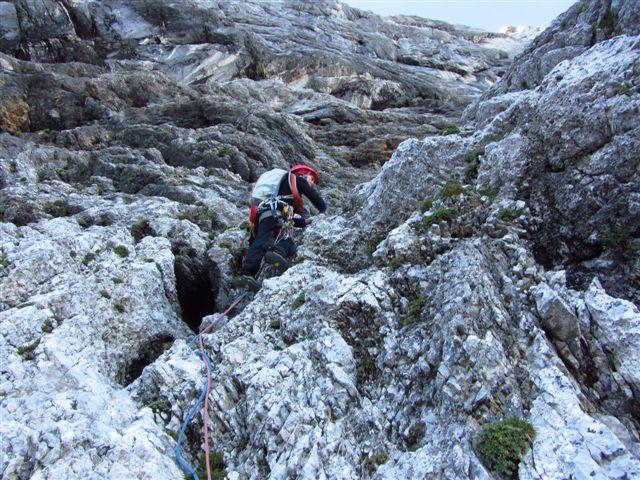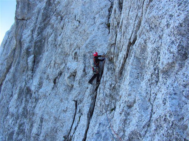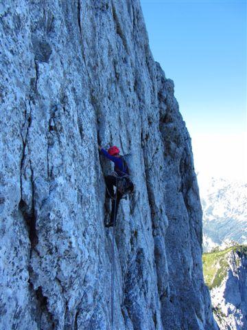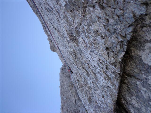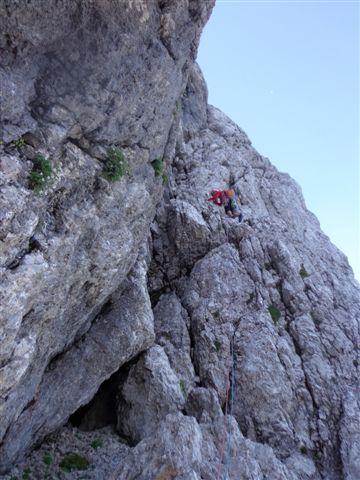 Minulo soboto zvečer sva s Ciganko prasnila na kočo na Klemenči jami, prespala v družbi nemško govorečih smrčačev in slovensko govorečih šušljačev :) . V nedeljo zjutraj pa prijela za odlično skalo v Ojstrici, z namenom preplezati Spominsko smer Iva Reye ali tako imenovanega Zmaja. Plezarija je zahvaljujoč dobri skali lepo stekla. Začetne raztrežaje sva poplezala nenavezana, našla izvoz v Zmaja, zlezla prvi težji raztrežaj in ko sem že sam pr sem mrmral „orientacija danes nama pa res dobr teče“ sva ubrala varianto za „tapridne“ :) .Sfalila sva detajl smeri in vzporedno preplezala, z eno jebo opremljeno, zajedo majavih oprimkov in spodobne težavnosti (Nejčeva smer ?). Nad zajedo sva spet ujela Zmaja za rep in po slabih sedmih urah izplezala na vršno gredo koder poteka sestop po Kopiščarjevi ferati.