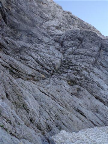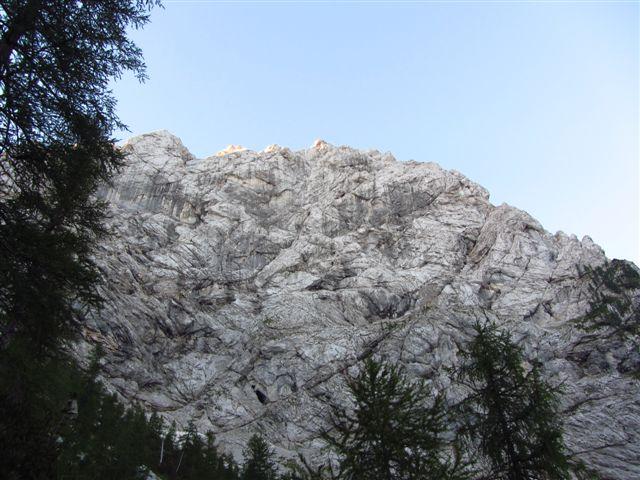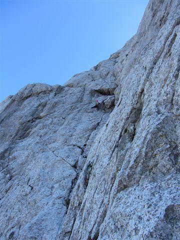 Včeraj sva se kljub grožnjam s plohami z Jankotom podala v Zadnjico pogledat Malo Špičje. Če bo šlo, super, če ne pa tudi je bil moto, ko sva zjutraj začela dolg dostop. S pašnim korakom ostarelega gamsa sva bila v slabih 3 urah pod steno. Dokaj optimistično sva gledala prehode in si bila enotna, da poskusiva. Z vsakim metrov je smer bolj presenečala. Pozitivno :). Skala je bila vedno boljša, prehodi vedno bolj nori, klanci pa tudi:). Velika odlika stene so številne gredine in police, ki omogočajo zelo udobna sidrišča :). Zadnji trije so fantastični, najprej po čudoviti zveriženi poči, nato po drugi poči in prestop levo v tretjo poč, za zaključek, preden stopiš na tople trave vrha, pa še krasen kamin :). Skratka, smer je dolga približno 200 m, težave sem pa tja povohajo petico, varovanje pa odlično s klini in metulji. Dva klina počivata v pokah - prvi na prvem sidrišču, drugi pa v poči 4. raztežaja. Z vrha sva hitro pobegnila pred dežjem, ki naju je neuspešno lovil in v slabih 2 urah sva se že peljala proti Kranjski Gori k Milošu in Urški. Tam pa prešerno razpoložen izpitnik Željo in Gres in šef AO Mojstrana in začela se je druga zgodba... :)