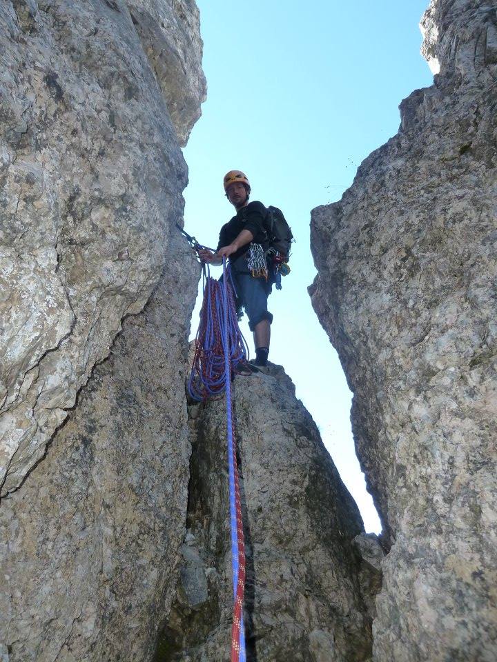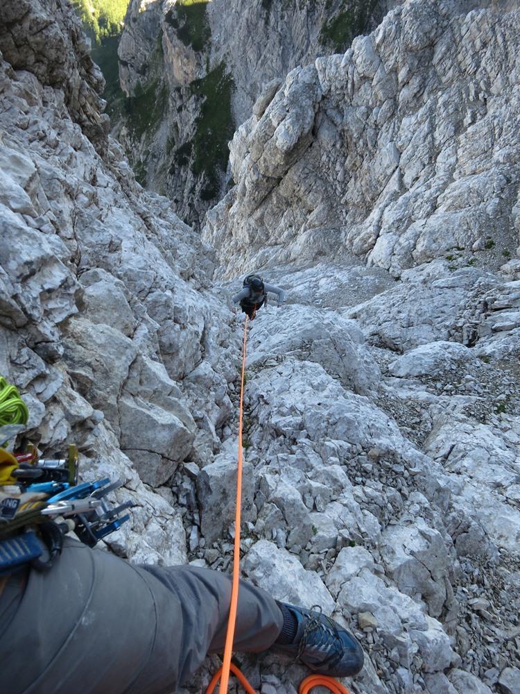 Dan po odhodu Marije v nebo, sva se z Jurijem Gorjancem podala na izpitno turo za naziv alpinist. Najin cilj je bila Smer Debelakove v Veliki Mojstrovki. Ker so bile popoldne napovedane plohe in nevihte, sva na pot krenila še v temi in ob prvem svitu že sopihala proti vstopu v smer. Z iskanjem smeri nisva imela težav, saj je Jurij zelo dobro naštudiral vse podrobnosti :). Po kratkem prigrizku in pripravi opreme sva se že začela poganjati po vstopni polici. Smer je bila popolnoma suha in plezanje je steklo, kot po tekočem traku, saj sva si že po treh urah in pol na robu stene segla v roke :). Sledilo je še nekaj orientacijskih ugank in zank, ki pa jih je Jurij uspešno opravil, tako da sva v Tonkini koči zalila njegov uspeh :).